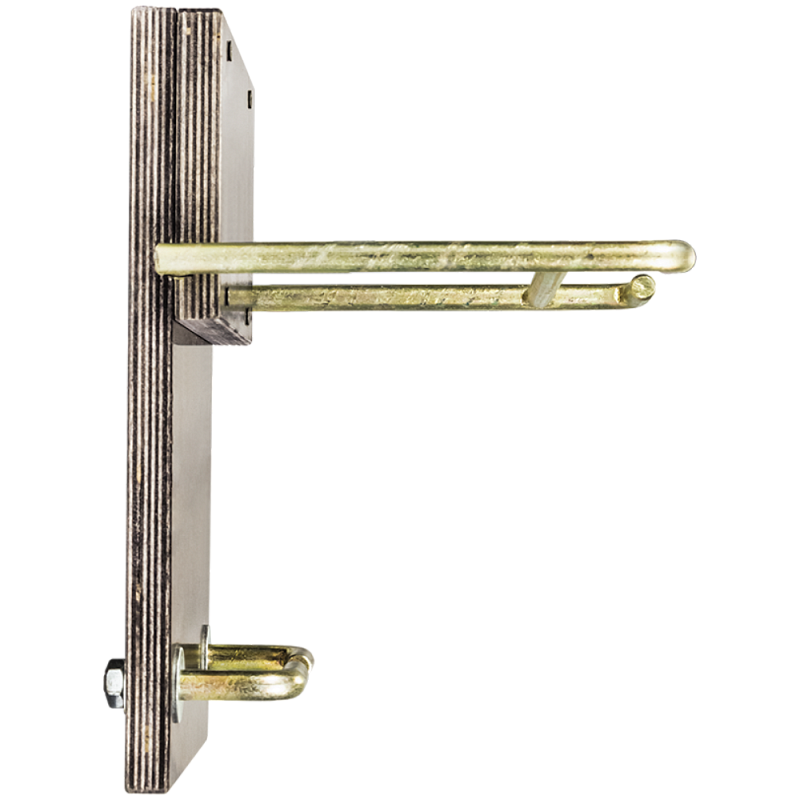 Представляет собой панель из соединенных между собой двух пластин из влагостойкой ламинированной фанеры толщиной 18 миллиметров каждая. Снабжен металлическими скобами из оцинкованной стали для жесткой фиксации на лодке. Устанавливается в транцевые шайбы, приклеенные на верхнюю и нижнюю часть баллона.